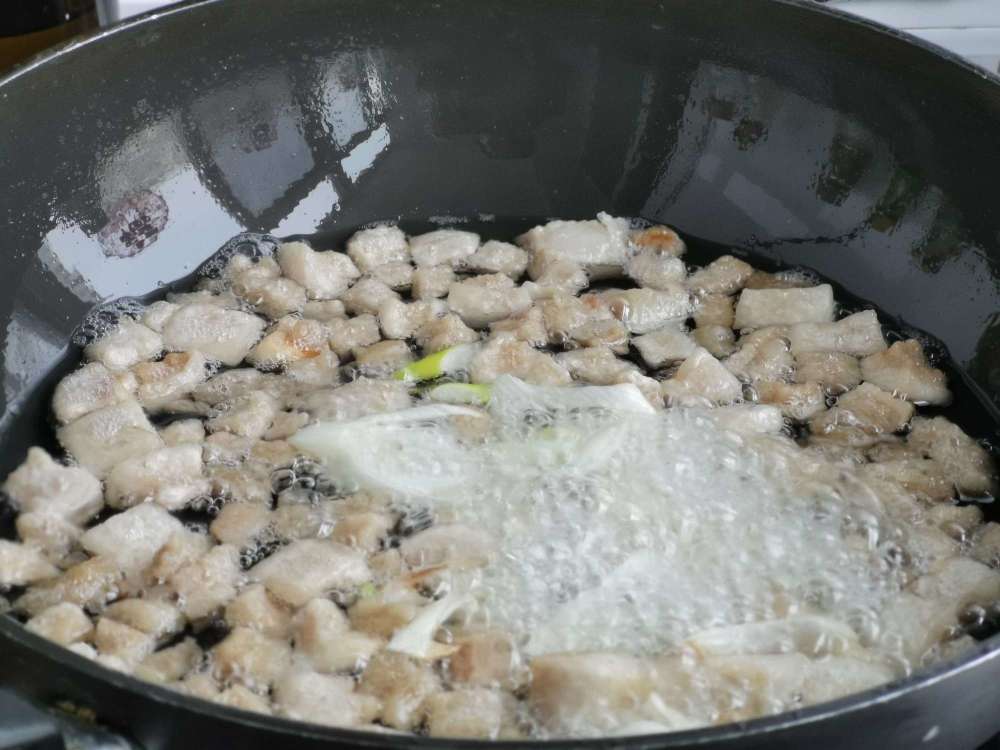第二步:等猪油熬好之后,将油渣捞出,参加生姜、大葱油渣,意图是去除猪油傍边的腥味,炸好之后将生姜、大葱捞出,参加食盐拌和均匀,倒入保存猪油的容器傍边,等其天然冷却之后,盖上盖子就可以了,过两天就会主动变成又香又白无腥味的猪油了。