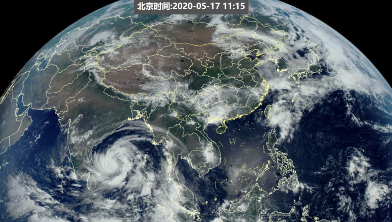 5月17日上午,从更小规模的卫星云图上看,可见这个风暴的云系现已全面的打开,中心区很多云团集合成了一个严密的中心云区,整个体系的螺旋性结构现已适当明晰,这表明它确实渐渐的开端蓬勃发展,在这种情况下,印度气象局现已宣告将其命名为北印度洋孟加拉湾本年第1号气旋风暴“安攀”(Amphan)。
