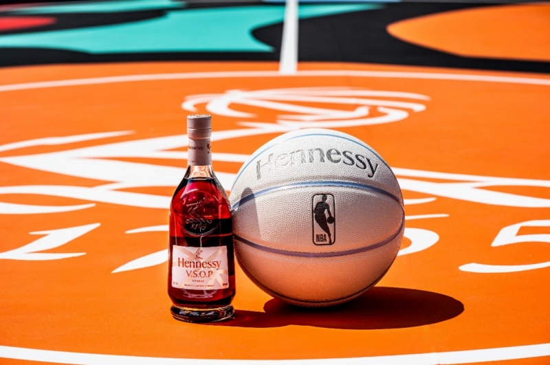 上海天际线、篮球、轩尼诗酒瓶等元素跃然于球场之上