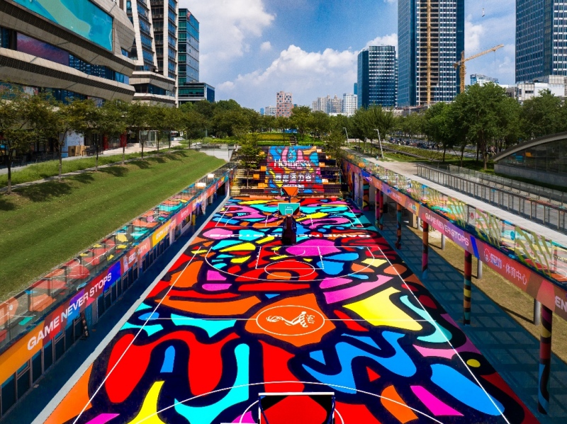 本次轩尼诗“Hennessy In The Paint”公益球场,由知名菲裔艺术家Jayson Atienza亲自打造。他从上海的城市景观中汲取灵感,用其标志性的线条,将上海天际线、篮球和轩尼诗酒瓶等元素呈现在球场之上,明艳丰富的色彩填充,象征着赛场之上时刻洋溢着的热情,传递出了球员在比赛时所释放的能量,更映衬出上海这座城市充沛的活力。表达了轩尼诗与NBA两个传奇品牌携手并进所带来的新的突破以及一如既往的创新精神。该公益球场的建成,不仅丰富了城市文化体验,也为篮球爱好者们创造了一个大显身手的全新舞台。