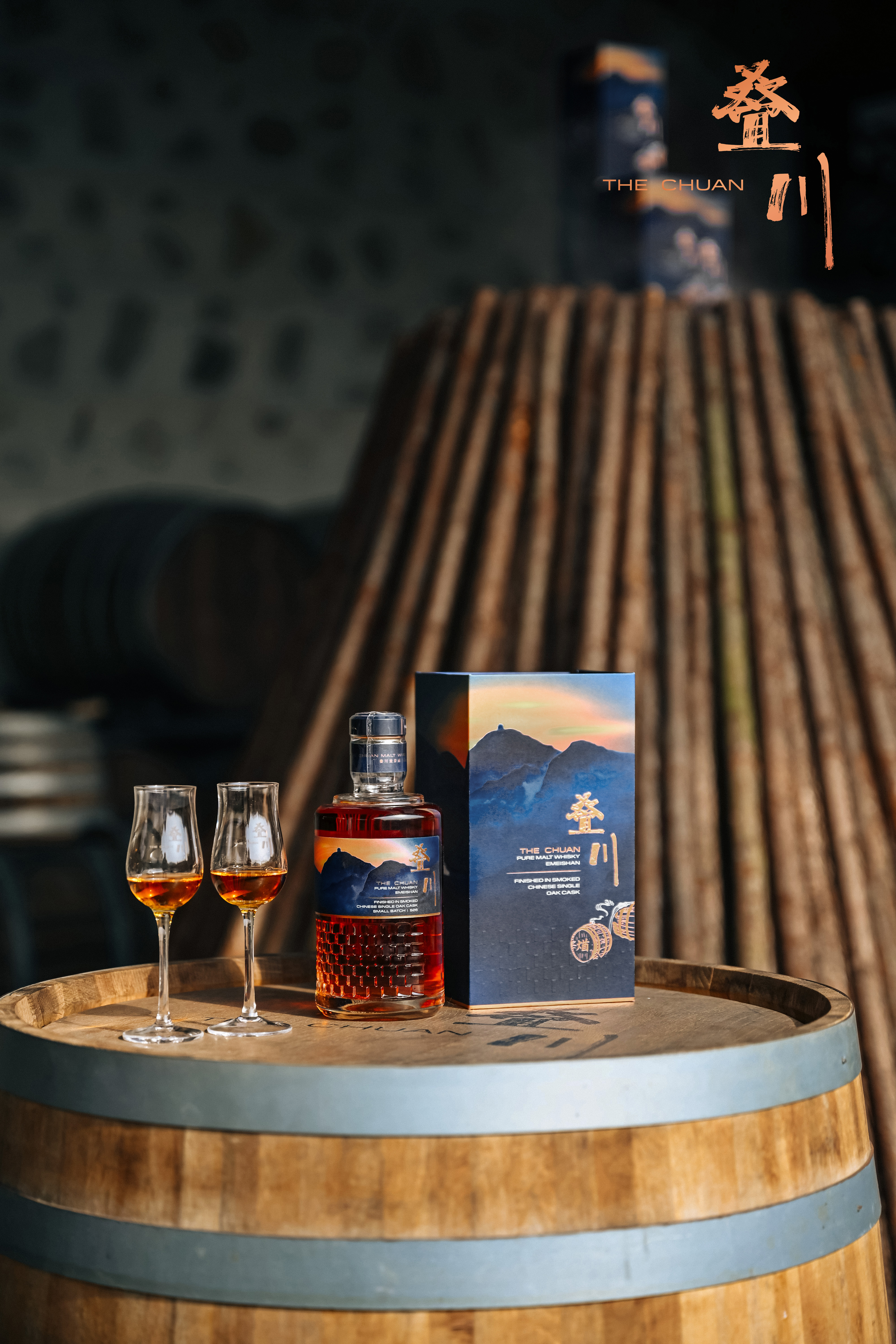 叠川的持续创新,始终根植于国际纯正威士忌酿造工艺与中国元素、本地风土的相融。从由本土团队主导研发与生产,到精选中国与欧洲双产地优质大麦,再到创新运用源自中国长白山的单岭®橡木,叠川不断探索着东方风土的个性表达。而在此次创作中,叠川首席酿酒师杨涛博士与本土团队将目光投向了酒厂所在地四川在传统年节的烟火记忆,当地传统烟熏工艺“煪”在威士忌酿造环节中成为了创新工艺的灵感来源——区别于传统苏格兰工艺,叠川团队将中国单岭®橡木桶用低温慢烘延时炭化工艺处理,酿成一款打破西方烟熏范式、重新定义东方烟熏美学的威士忌作品。